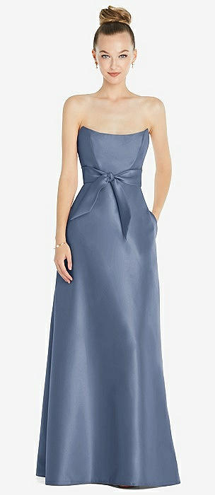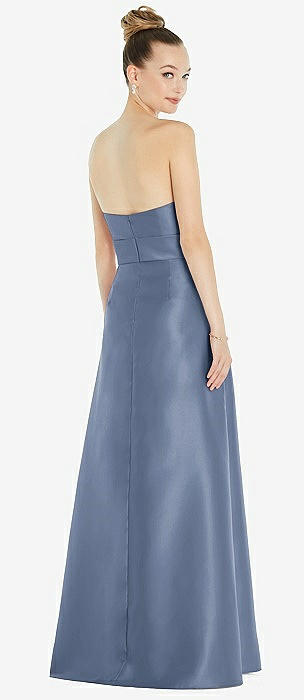 Strapless Notch Satin Gown with Pockets in larkspur blue