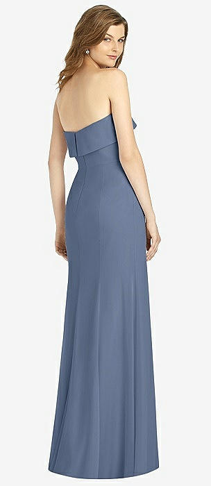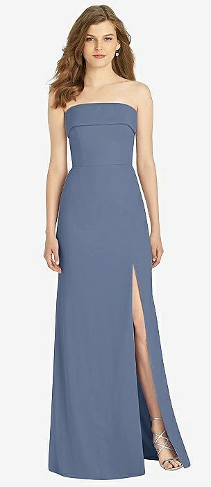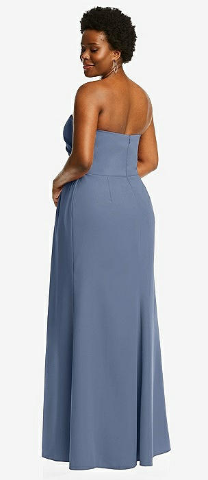 Strapless Pleated Faux Wrap Trumpet Gown with Front Slit in larkspur blue