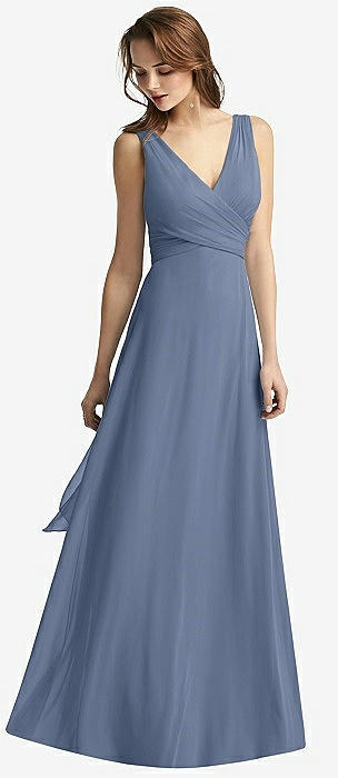 Sleeveless V-Neck Chiffon Wrap Dress in larkspur blue