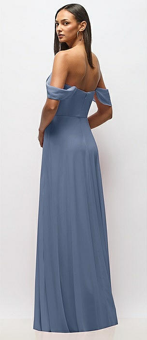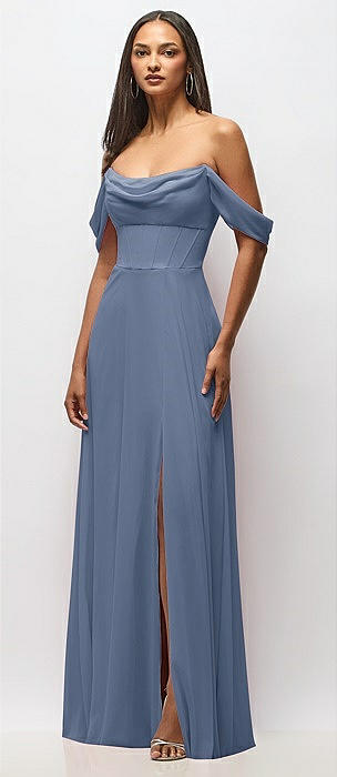 Chiffon Corset Maxi Dress with Removable Off-the-Shoulder Swags in larkspur blue