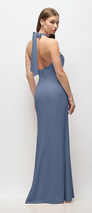 Tie Halter Open Back Trumpet Gown in larkspur blue