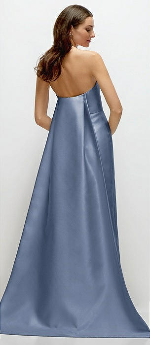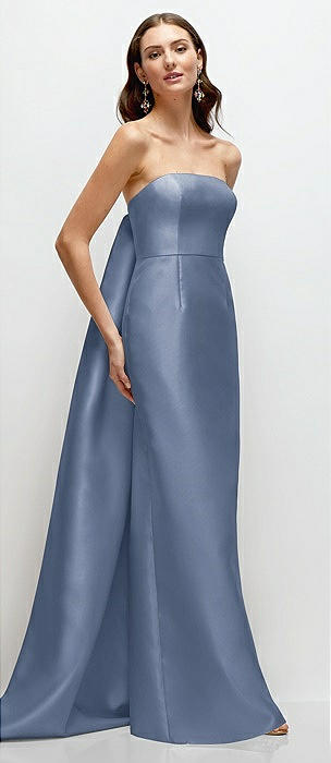 Strapless Satin Column Dress with Removeable Watteau Train in larkspur blue