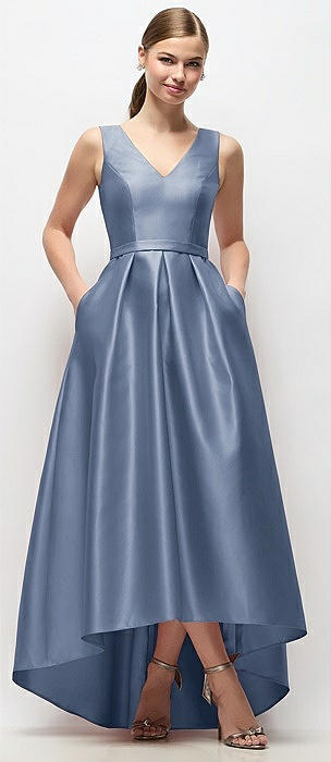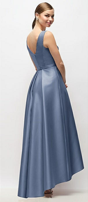 Sleeveless Pleated Skirt High Low Dress with Pockets in larkspur blue