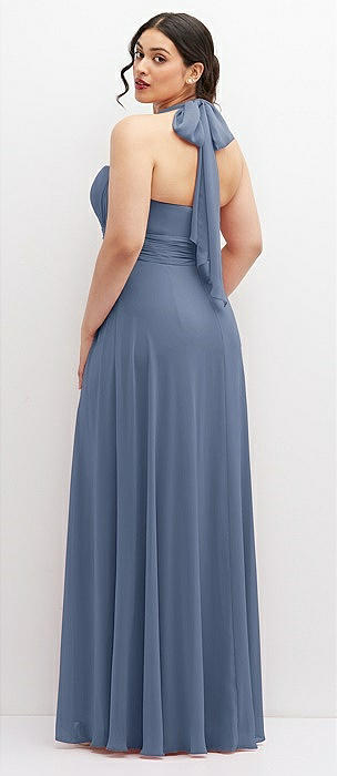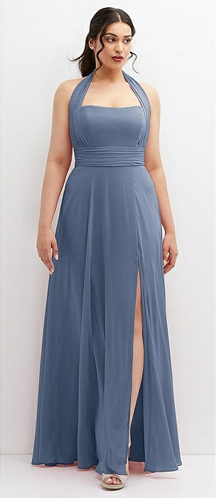 Diamond Halter Maxi Dress with Adjustable Straps in larkspur blue