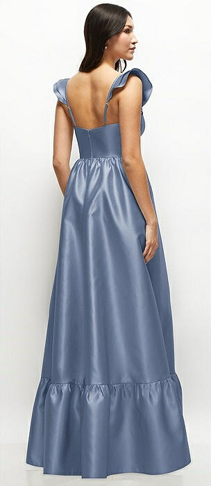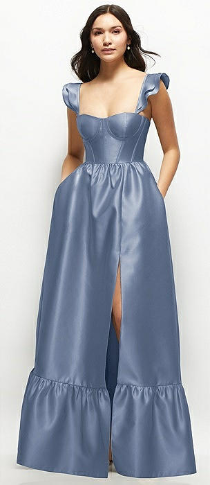 Satin Corset Maxi Dress with Ruffle Straps & Skirt in larkspur blue