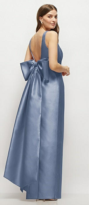 Strapless Satin Column Maxi Dress with Oversized Handcrafted Bow in larkspur blue