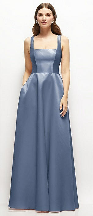 Satin Square Neck Fit and Flare Maxi Dress in larkspur blue