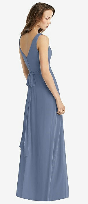 Sleeveless V-Neck Chiffon Wrap Dress in larkspur blue