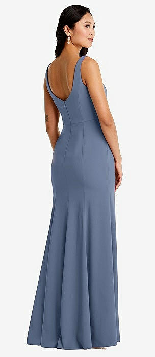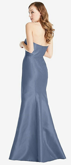 Off-the-Shoulder Bow-Back Satin Trumpet Gown in larkspur blue