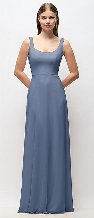 Scoop-Neck Tank Bodice Maxi Dress with Full Skirt in larkspur blue