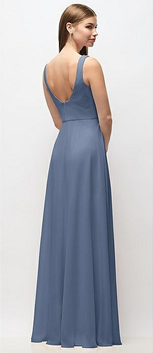 Deep V-Neck Chiffon Maxi Dress in larkspur blue