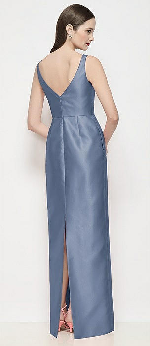 Bateau Neck Satin Maxi Dress with Pleated Column Skirt in larkspur blue