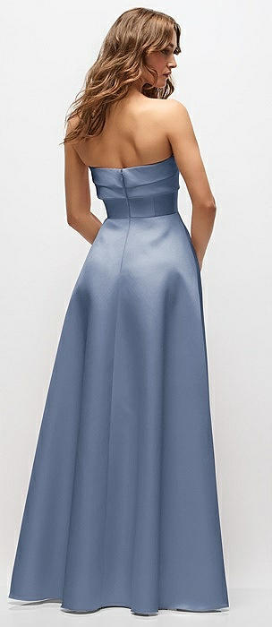 Strapless Pleated U-Wire Satin Maxi Dress with Semi Circle Skirt in larkspur blue
