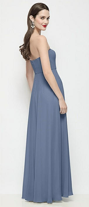 Strapless Chiffon Maxi Dress with Asymmetrical Ruched Drop Waist in larkspur blue
