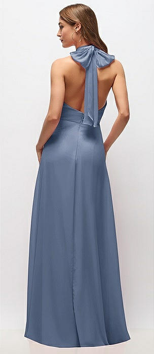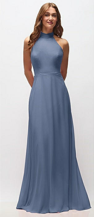 High Neck Halter Backless Maxi Dress in larkspur blue