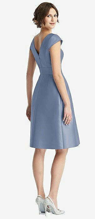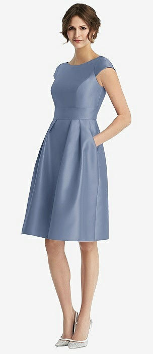 Cap Sleeve Pleated Cocktail Dress with Pockets in larkspur blue