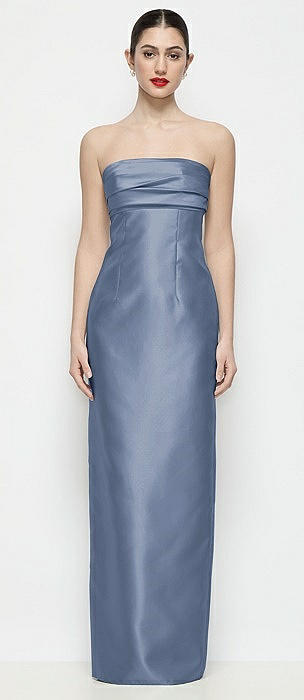 Strapless Pleated Empire Satin Column Maxi Dress in larkspur blue