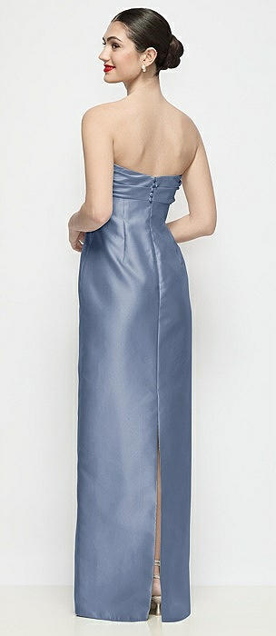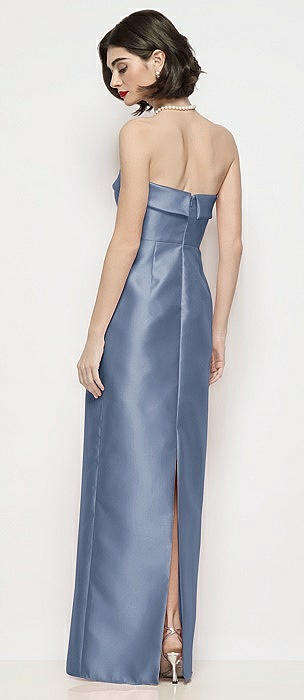 Strapless Cuff Satin Maxi Dress with Column Skirt & Back Bow in larkspur blue