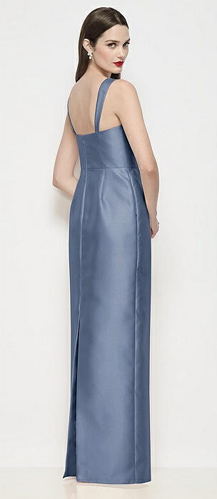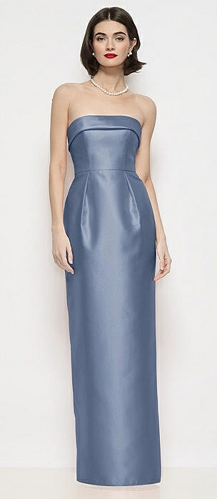 Strapless Cuff Neck Satin Maxi Dress with Column Skirt in larkspur blue