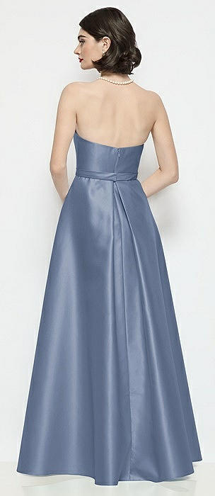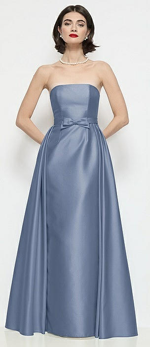 Strapless Bow-Waist Satin Column Dress with Overskirt