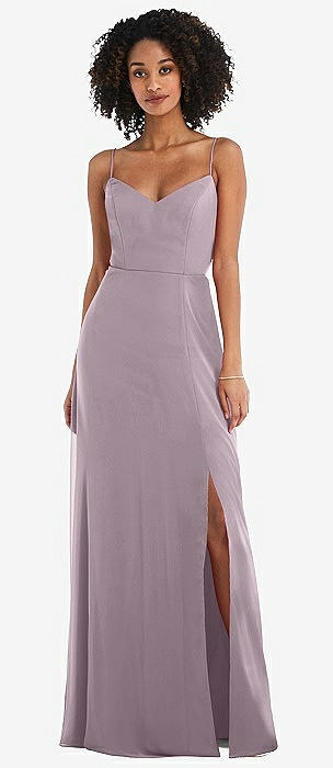 Tie-Back Cutout Trumpet Gown with Front Slit in lilac dusk