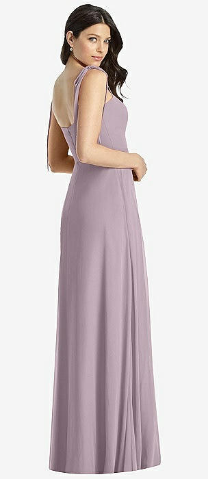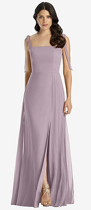 Tie-Shoulder Chiffon Maxi Dress with Front Slit in lilac dusk
