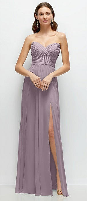 Strapless Pleated Surplice Chiffon Maxi Dress with A-Line Skirt in lilac dusk