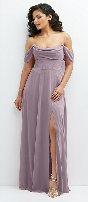 Chiffon Corset Maxi Dress with Removable Off-the-Shoulder Swags