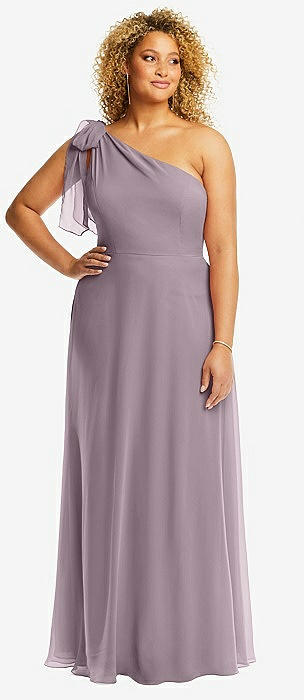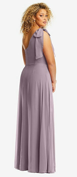 Draped One-Shoulder Maxi Dress with Scarf Bow in lilac dusk