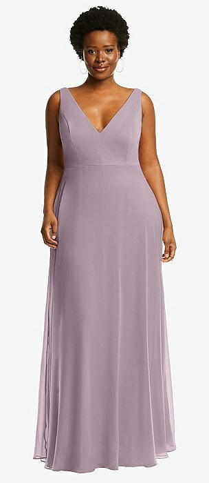 Deep V-Neck Chiffon Maxi Dress in lilac dusk
