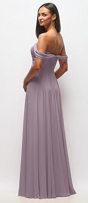 Off-the-Shoulder Basque Corset Chiffon Maxi Dress in lilac dusk