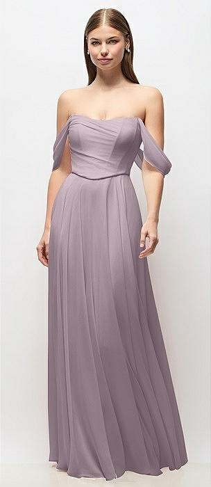 Off-the-Shoulder Basque Corset Chiffon Maxi Dress in lilac dusk