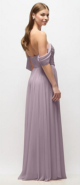 Strapless Shirred Chiffon Trapeze Maxi Dress in lilac dusk