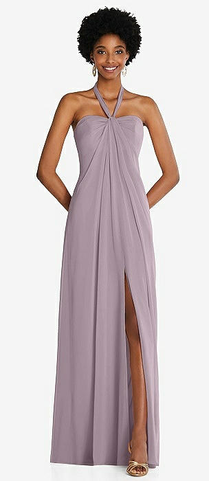 Empire Waist Chiffon Halter Maxi Dress with Convertible Spaghetti Straps