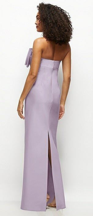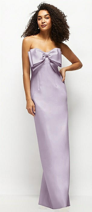 Strapless Satin Column Maxi Dress with Oversized Handcrafted Bow in lilac haze