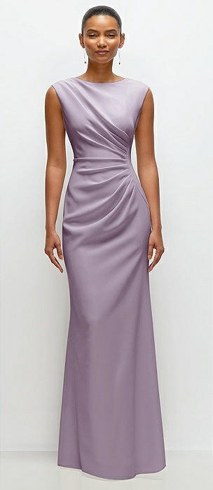 Sleeveless Cap Shoulder Crepe Maxi Dress with Trumpet Skirt in lilac haze