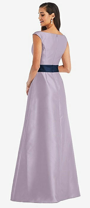 Off-the-Shoulder Bow-Back Satin Trumpet Gown in lilac haze
