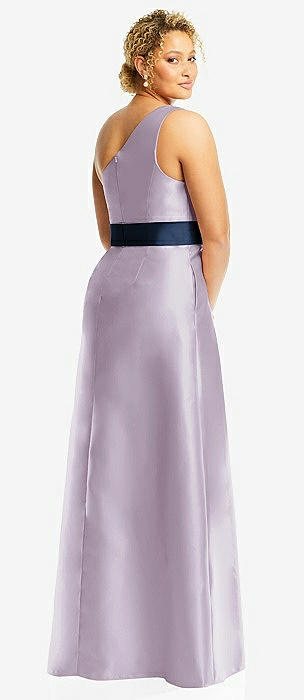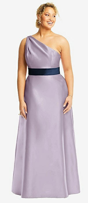 Draped One-Shoulder Satin Trumpet Gown with Front Slit in lilac haze