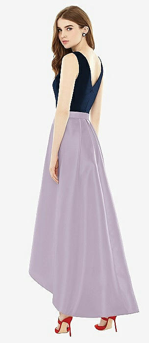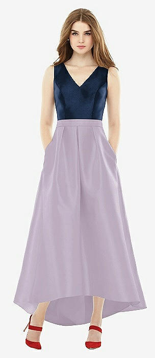 Sleeveless Pleated Skirt High Low Dress with Pockets in lilac haze