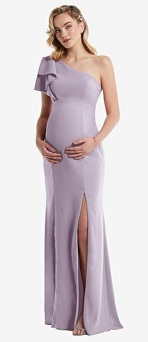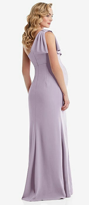 One-Shoulder Ruffle Sleeve Maternity Trumpet Gown in lilac haze