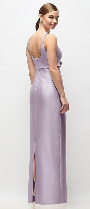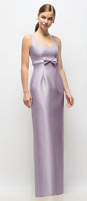 Scoop Neck Satin Column Maxi Dress with Bow at Empire Waist in lilac haze