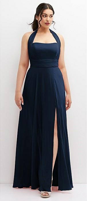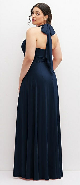 Scarf Tie High-Neck Halter Maxi Slip Dress in midnight navy