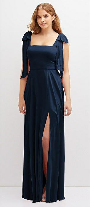 Bow Shoulder Square Neck Chiffon Maxi Dress in midnight navy