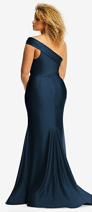 One-Shoulder Bias-Cuff Stretch Satin Mermaid Dress with Slight Train in midnight navy