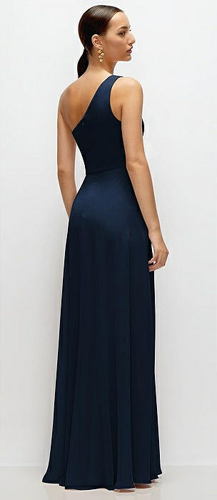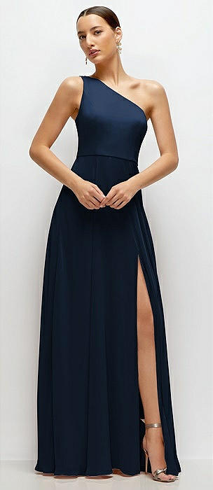 Chiffon One-Shoulder Maxi Dress with Circle Skirt in midnight navy