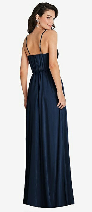 Draped Cowl-Back Princess Line Dress with Front Slit in midnight navy