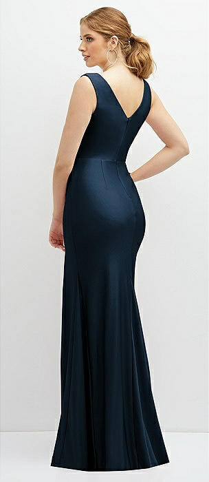 Deep V-Neck Stretch Satin Mermaid Dress with Slight Train in midnight navy