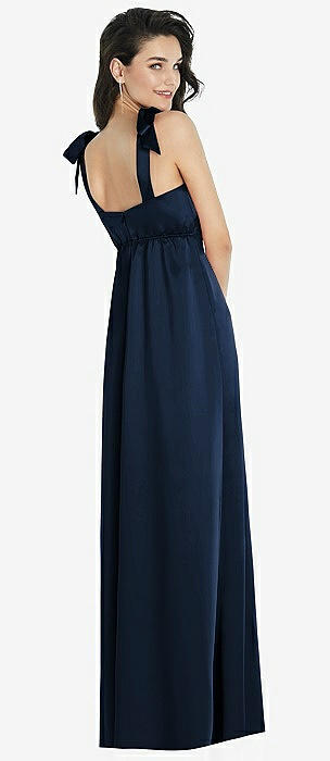 Flat Tie-Shoulder Empire Waist Maxi Dress with Front Slit in midnight navy