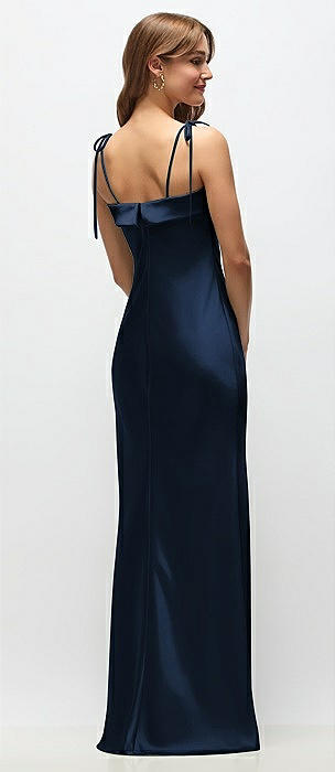 Cuff Neck Satin Bias Maxi Dress with Self-Tie Spaghetti Straps in midnight navy