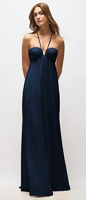 Empire Waist Chiffon Halter Maxi Dress with Convertible Spaghetti Straps in midnight navy